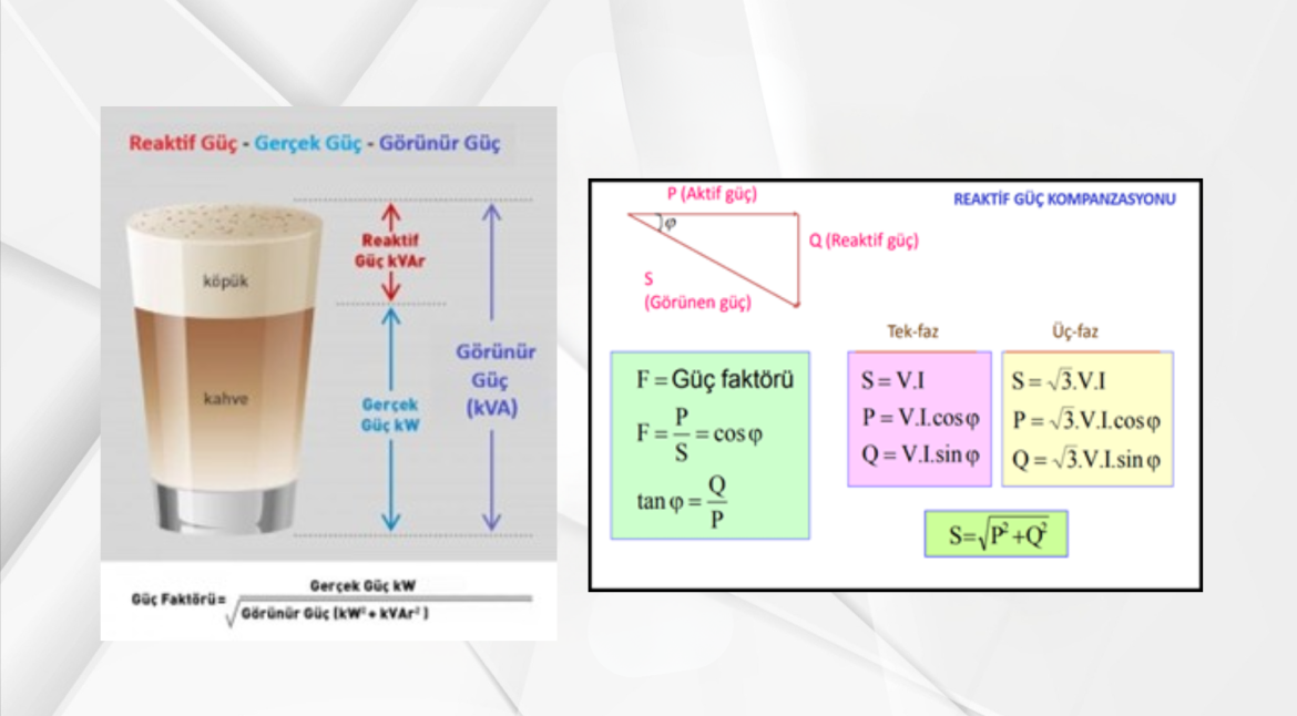 Bu nedenle sistemdeki güç faktörü (cos φ) izlenmeli ve uygun kompanzasyon sistemleri ile reaktif güç kontrol altına alınmalıdır. Güç faktörünün 1’e yakın olması, sistemin daha verimli çalıştığını gösterir.