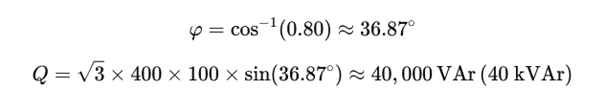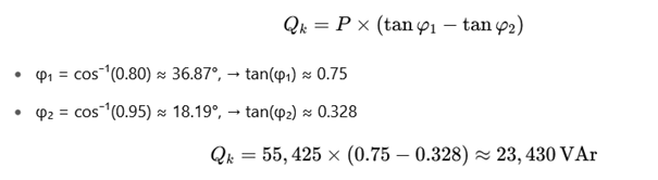 Sonuç olarak bu sistemde yaklaşık 25 kVAr kapasitif yük eklenerek kompanzasyon yapılmalıdır. Bu, kondansatör bankları ile sağlanabilir.